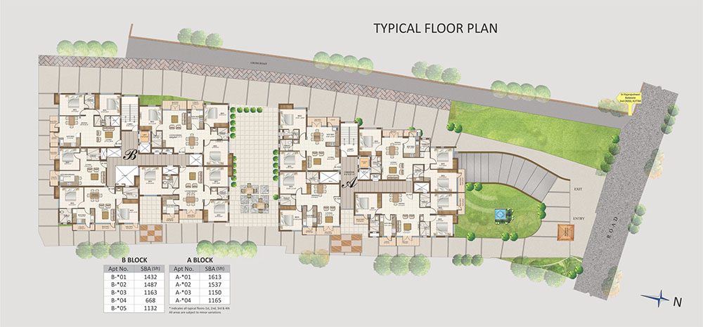 | LIFTS | Two 6 passenger lifts of reputed make (one in each block) |