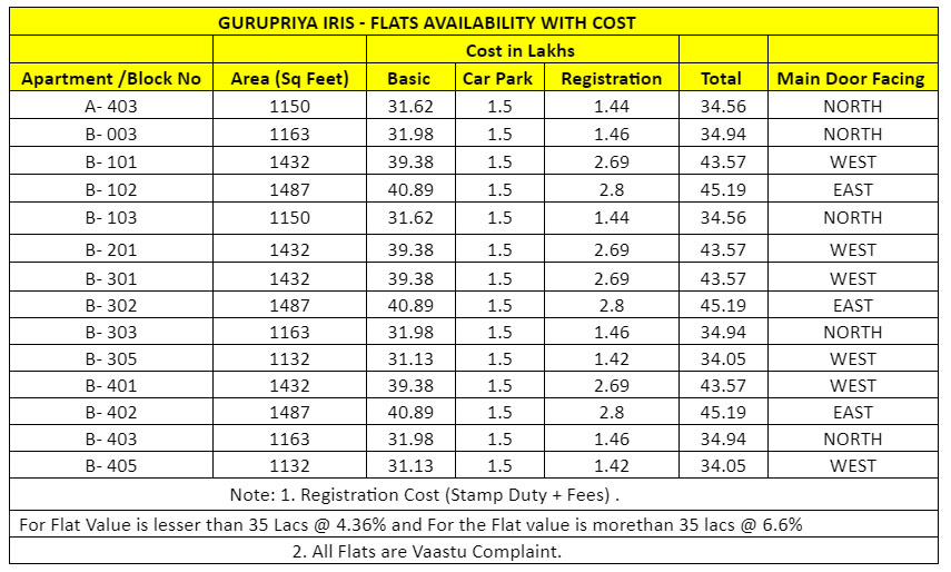Gurupriya Housing Pvt Ltd has two professional directors led by Managing Director Mr. K.V. Bhat having about 35 plus years of experience in apartment promotion and M/s Srinivas & Khan are the architects for the project. They are one of the more accomplished designers and are instrumental for some of the landmark buildings of Bangalore, Chennai, Hyderabad, Vizag & Mangalore. They have a rich experience of 40+ years. At Gurupriya, you will find our projects adhere to strict Governmental Regulations & norms.